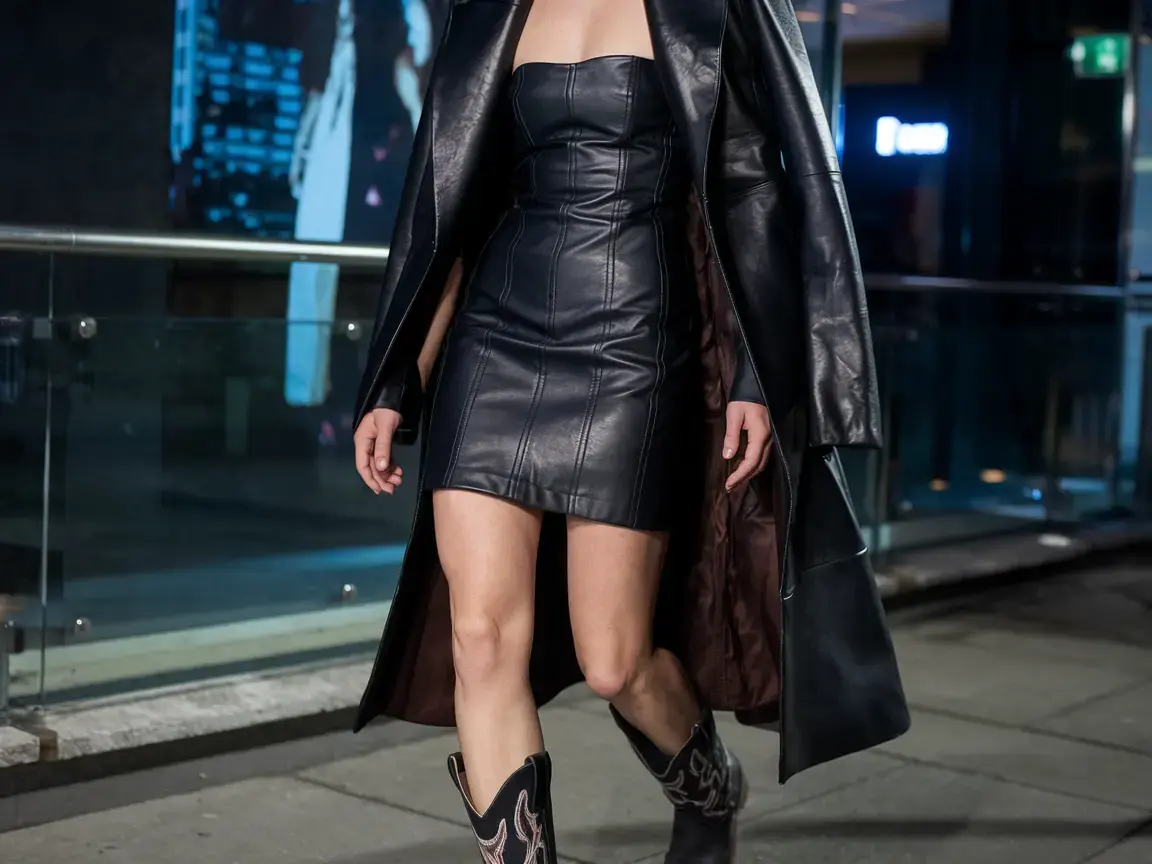 Leather dresses make a strong statement, and pairing one with cowboy boots adds an unexpected twist.