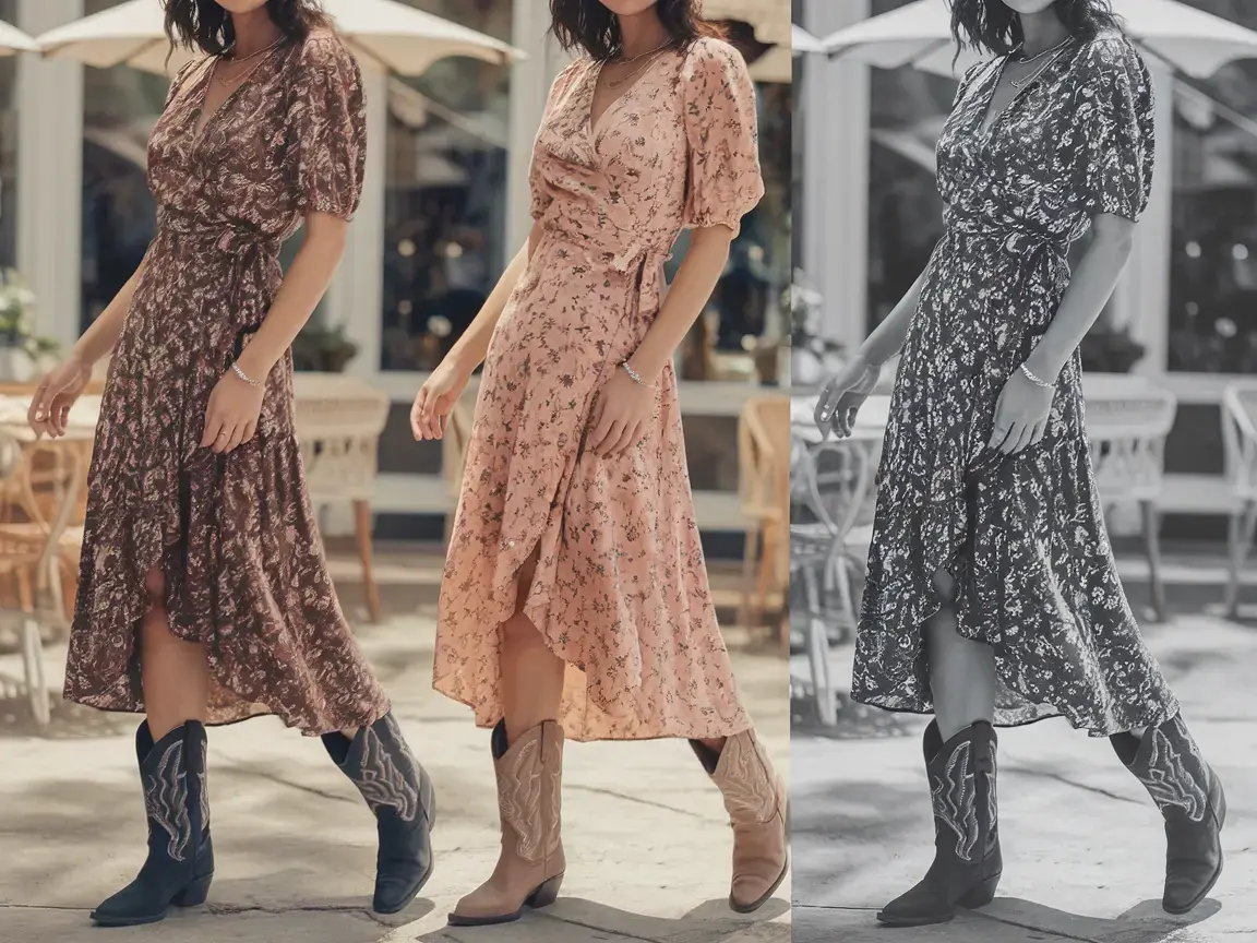 A wrap dress offers a flattering fit that works beautifully with western boots. It cinches at the waist, enhancing your shape while keeping things comfortable. Choose a floral or solid-toned option for versatility.