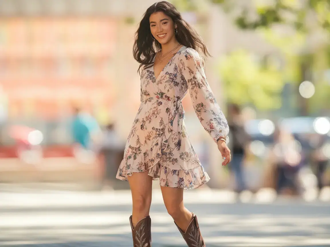 10. Feminine & Fierce: Floral Dress with Western Boots
