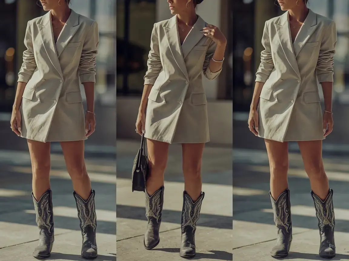 For a modern twist, try a blazer dress with cowboy boots. This structured-meets-rugged style makes a statement while keeping things sophisticated.