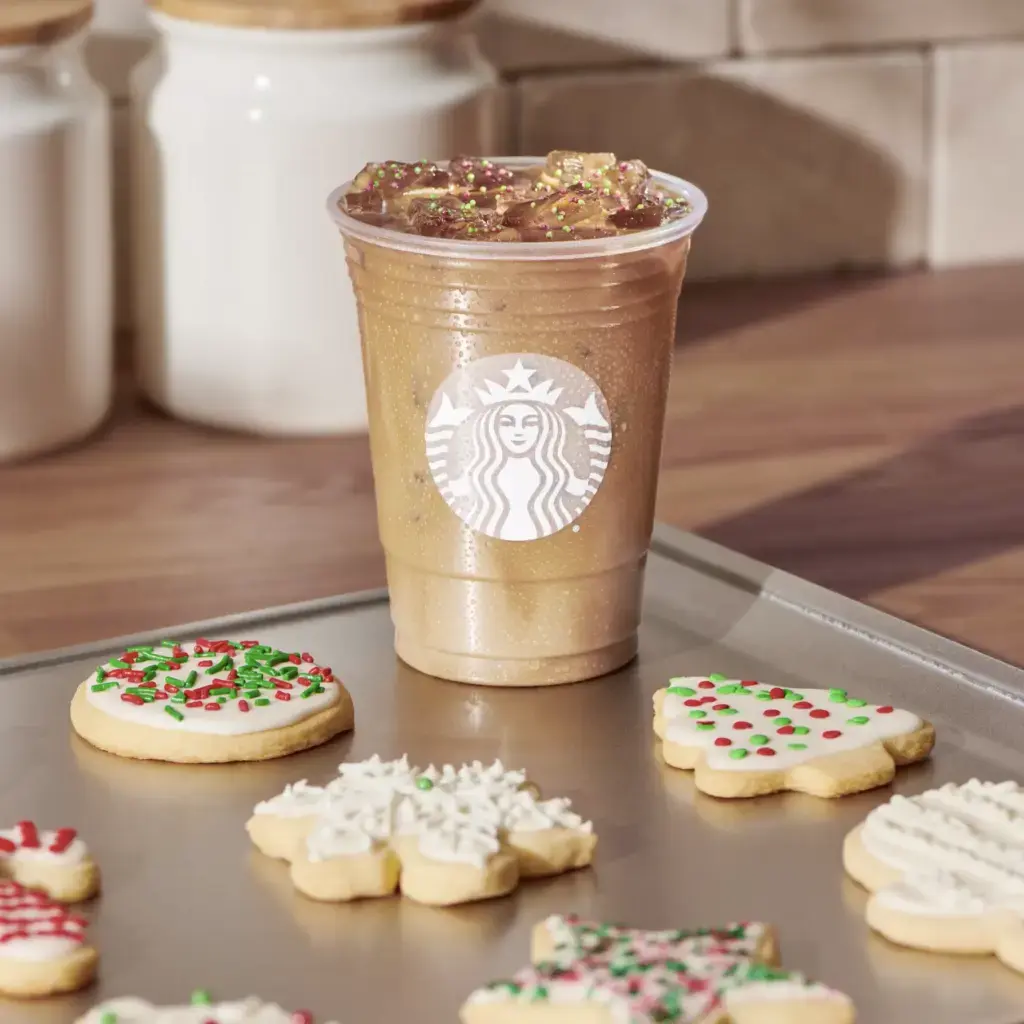 A winter menu wouldn’t be complete without a cookie-inspired drink. This latte blends Blonde Espresso with almond milk and sugar cookie-flavored syrup, topped with festive sprinkles.